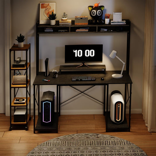 Bureau avec Rangement, Bureau d'angle en L, Poste de Travail avec Étagères